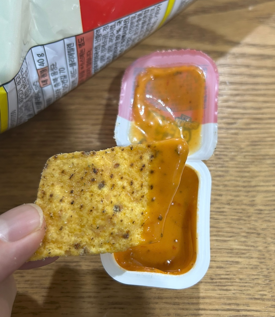 다시 봉지를 보니 '찍먹소스 2개'라고 하네요...