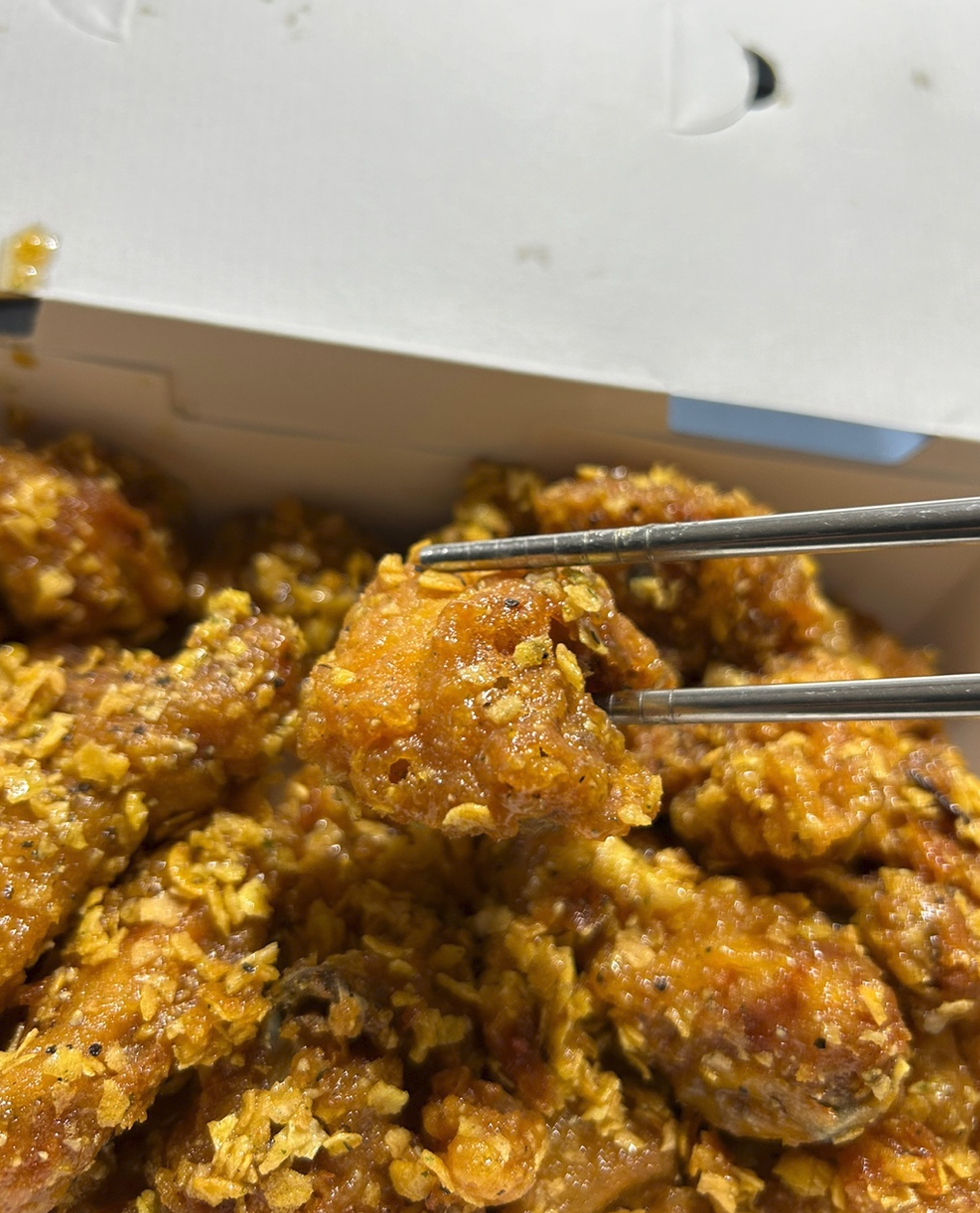 허니콤보는 군데군데 빈 공간이 보였는데, 교촌옥수수오리지널은 빈 공간은 찾아볼 수 없습니다...