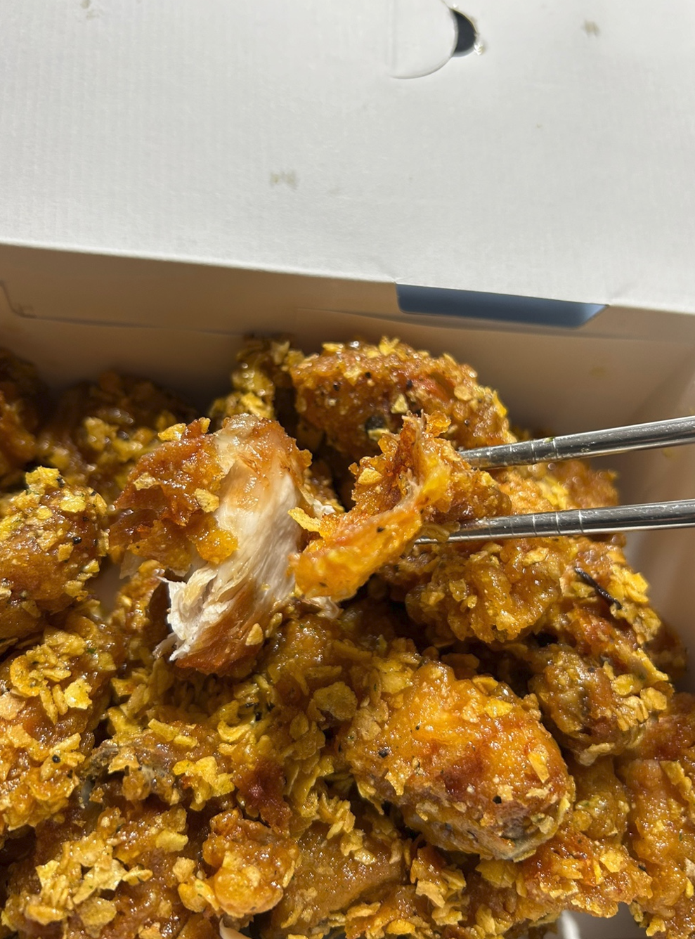 저처럼 젓가락 + 튼튼한 치아로 치킨을 발라먹는 사람에게는 또 하나의 기쁨입니다. ㅎㅎㅎ