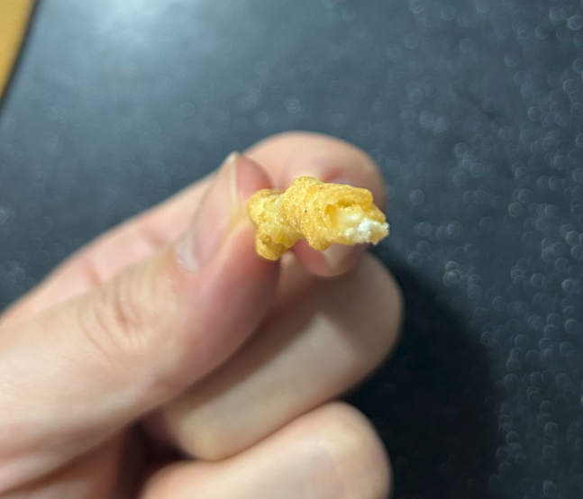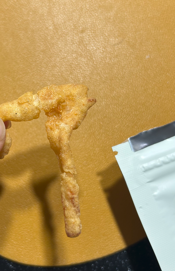 다양한 모양의 오징어채 튀김이 들어있습니다.