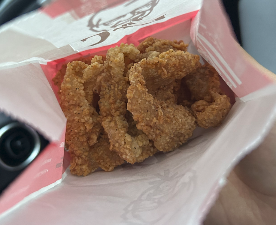 오호. 저도 먹어봤습니다. KFC 닭껍질튀김을요!