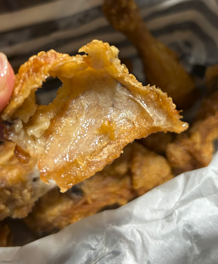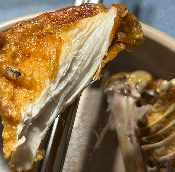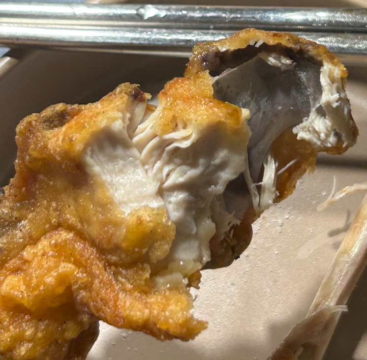 바삭하고 얇은 껍질에 야들야들한 살코기입니다.