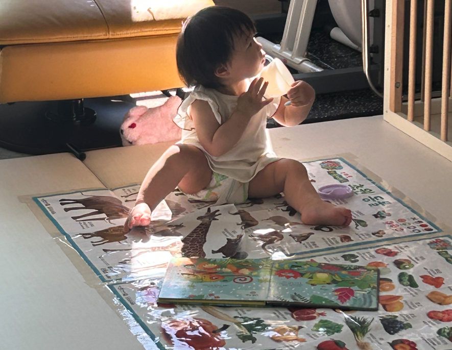 7개월은 물 마시는 컵.