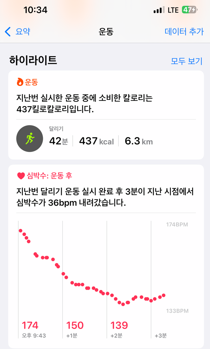 더 달리고 싶었으나(체력도 괜찮았기에) 무릎 바깥 부분이 찌릿찌릿해지는 바람에 달리기를 멈췄다.
