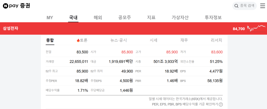삼성전자 주가는 85,000원이다(쉽게 쓰기 위해서)