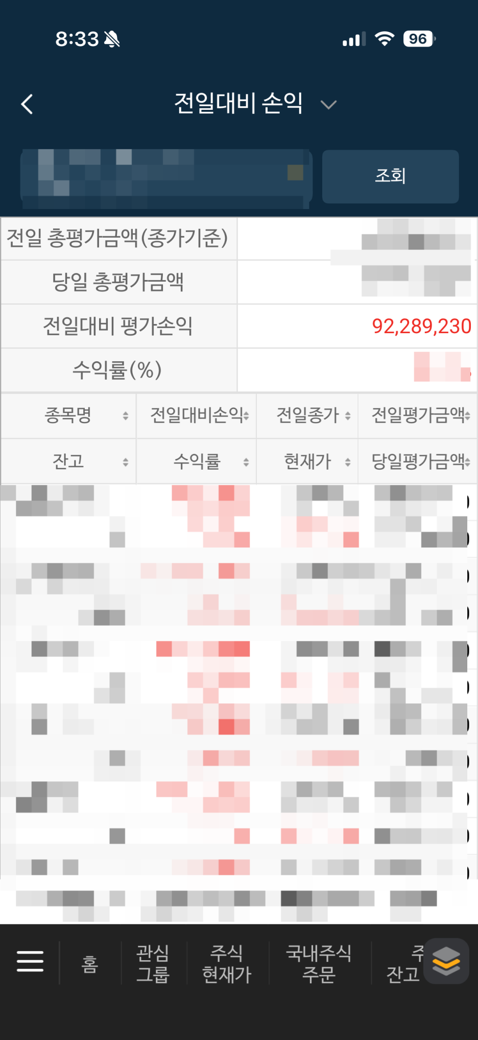 그리고 오늘의 플러스 변동금액이다.